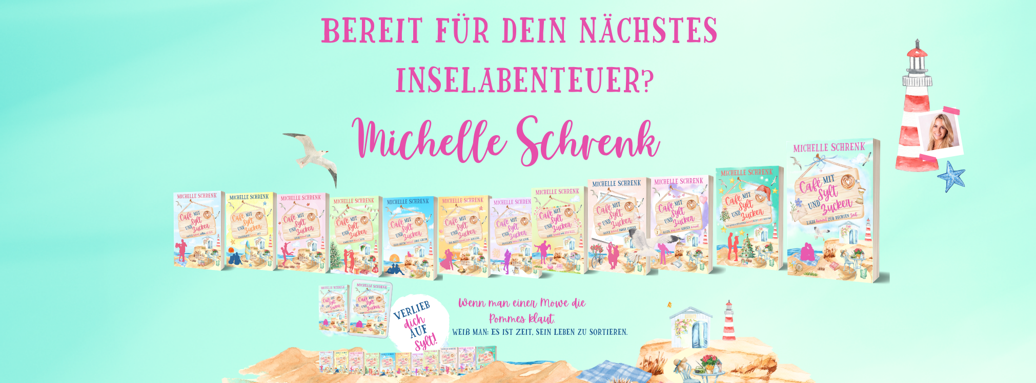Ich bin Michelle Schrenk – Autorin mit Sommer im Herzen, Urlaub im Kopf und einer großen Schwäche für gute Geschichten (und schlechten Wortwitz ).